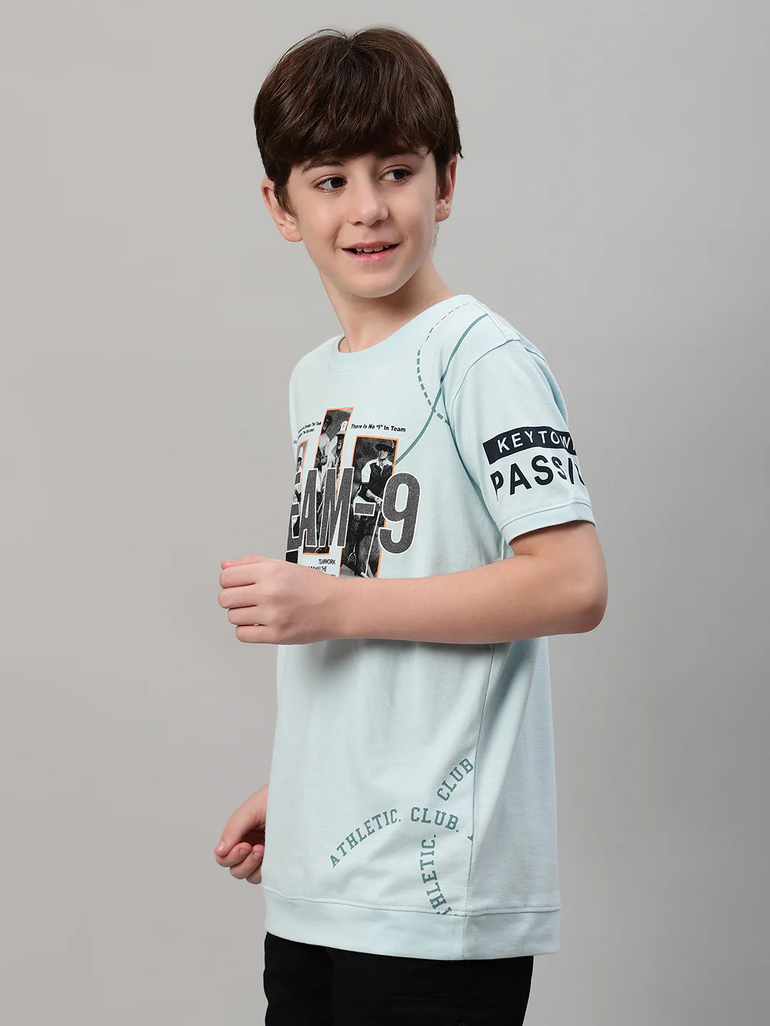 -70%Boys Casual Aqua Half Sleeve T-Shirt—