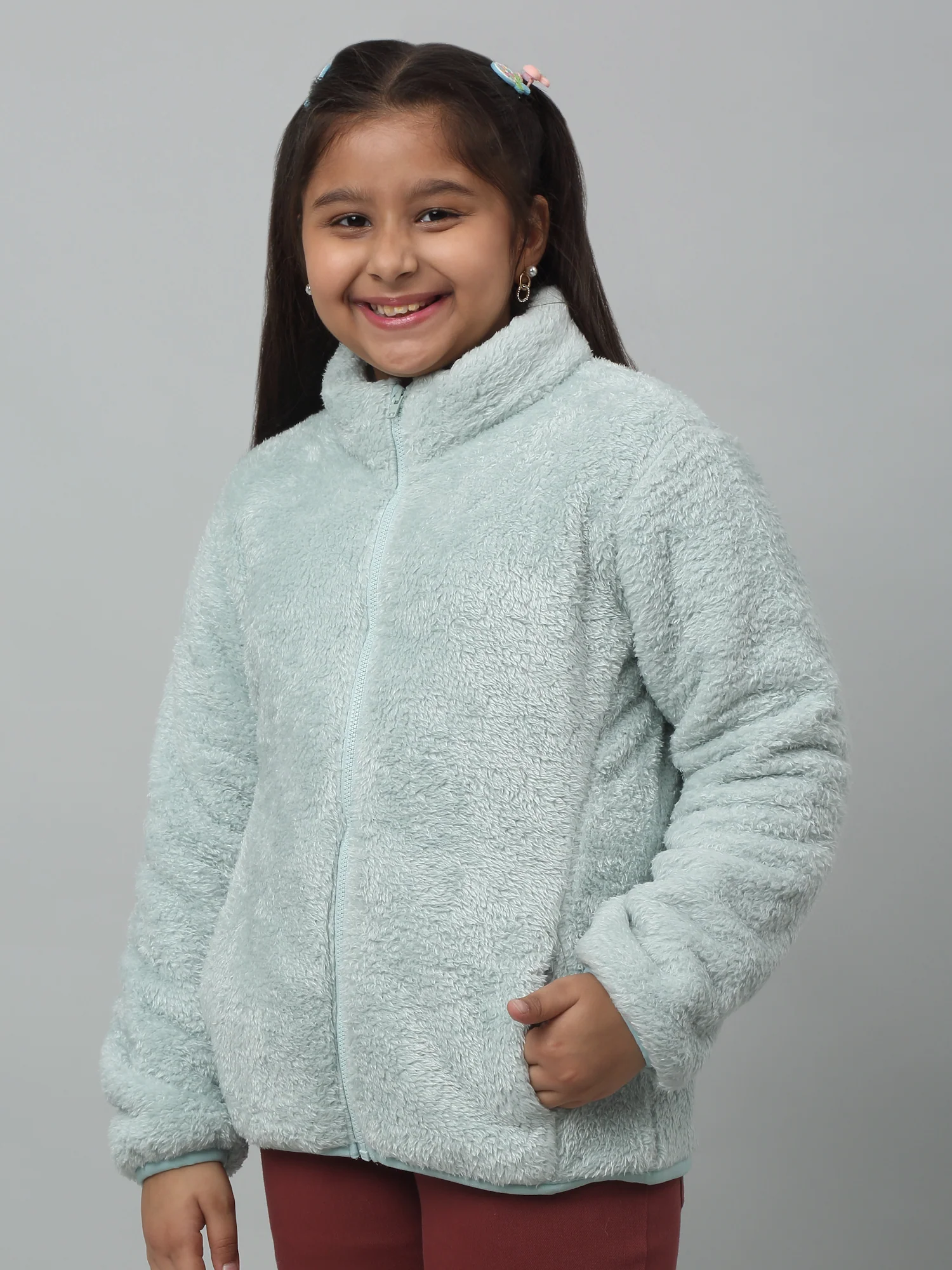 Girls Blue Mandarin Collar Casual Jacket For Winter