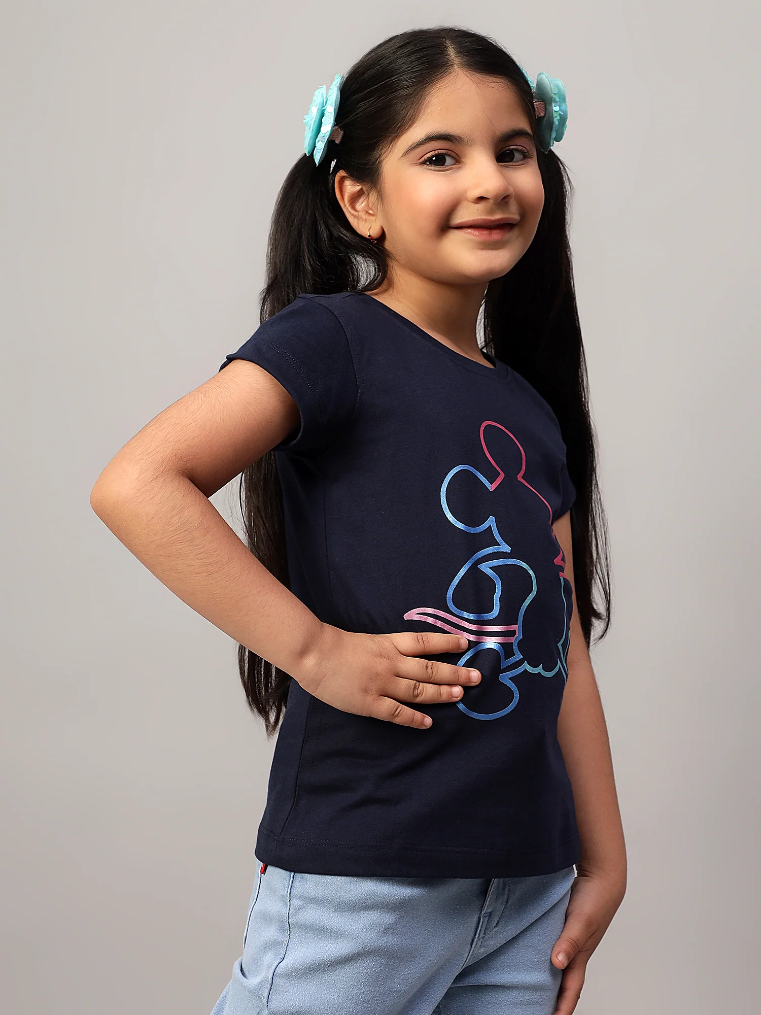 Girls Casual Navy Blue Half Sleeves T-Shirt