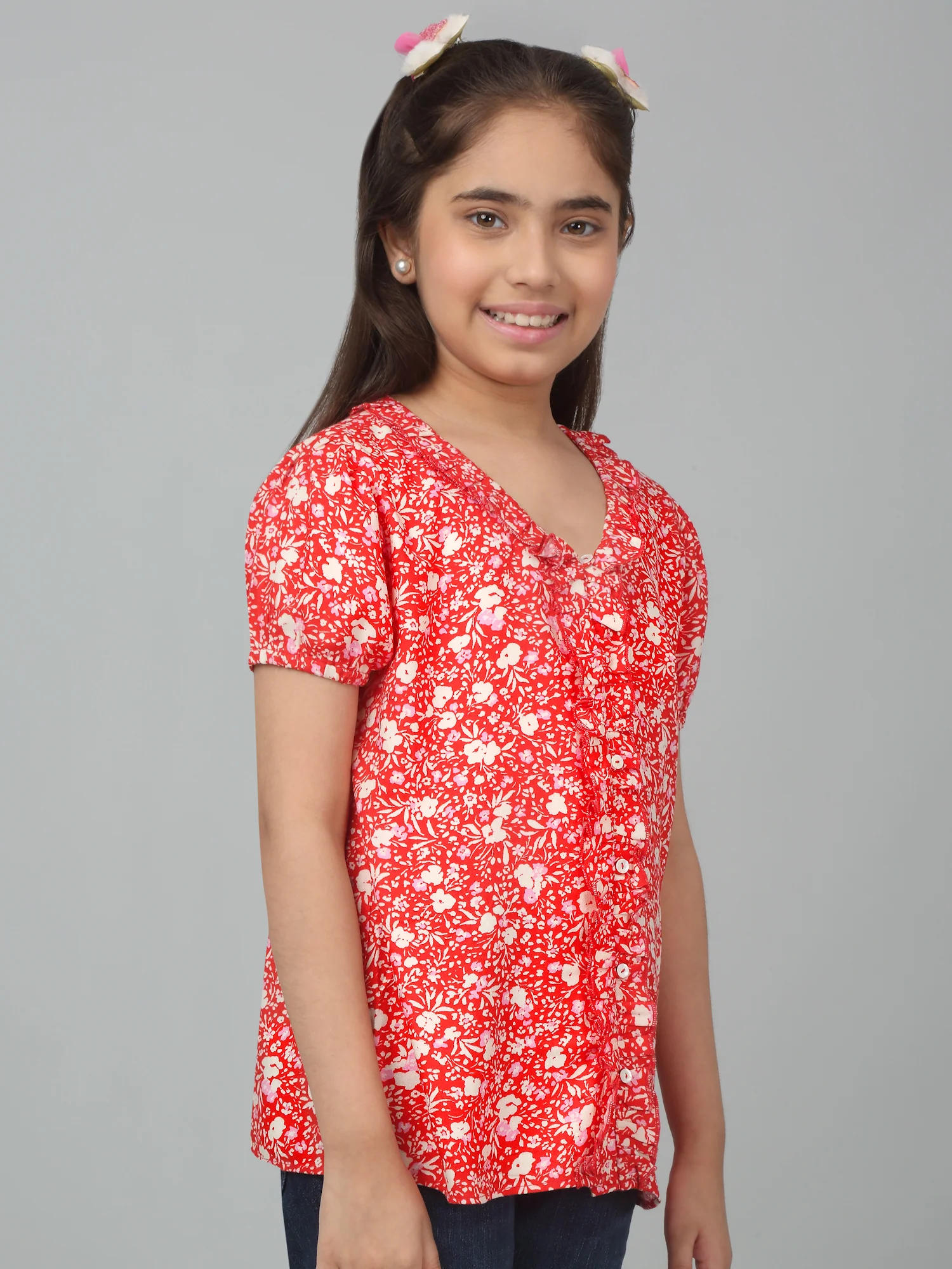Girls Basic Red Puffed Half Sleeves Top