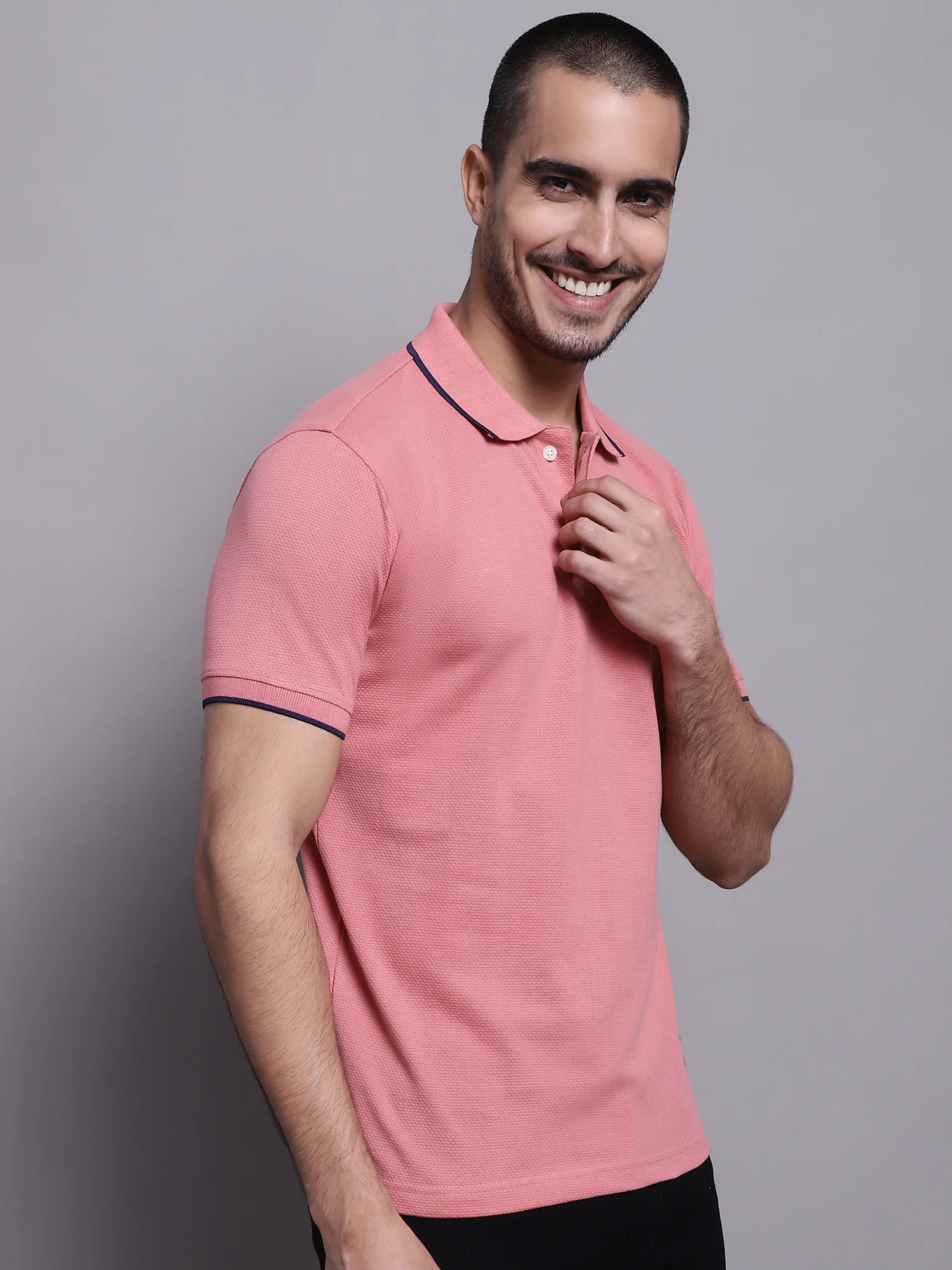 T-Shirt for Men | Breathable & Soft with Color Fastness Regular Fit Polo Neck Cotton Fabric Solid Pattern