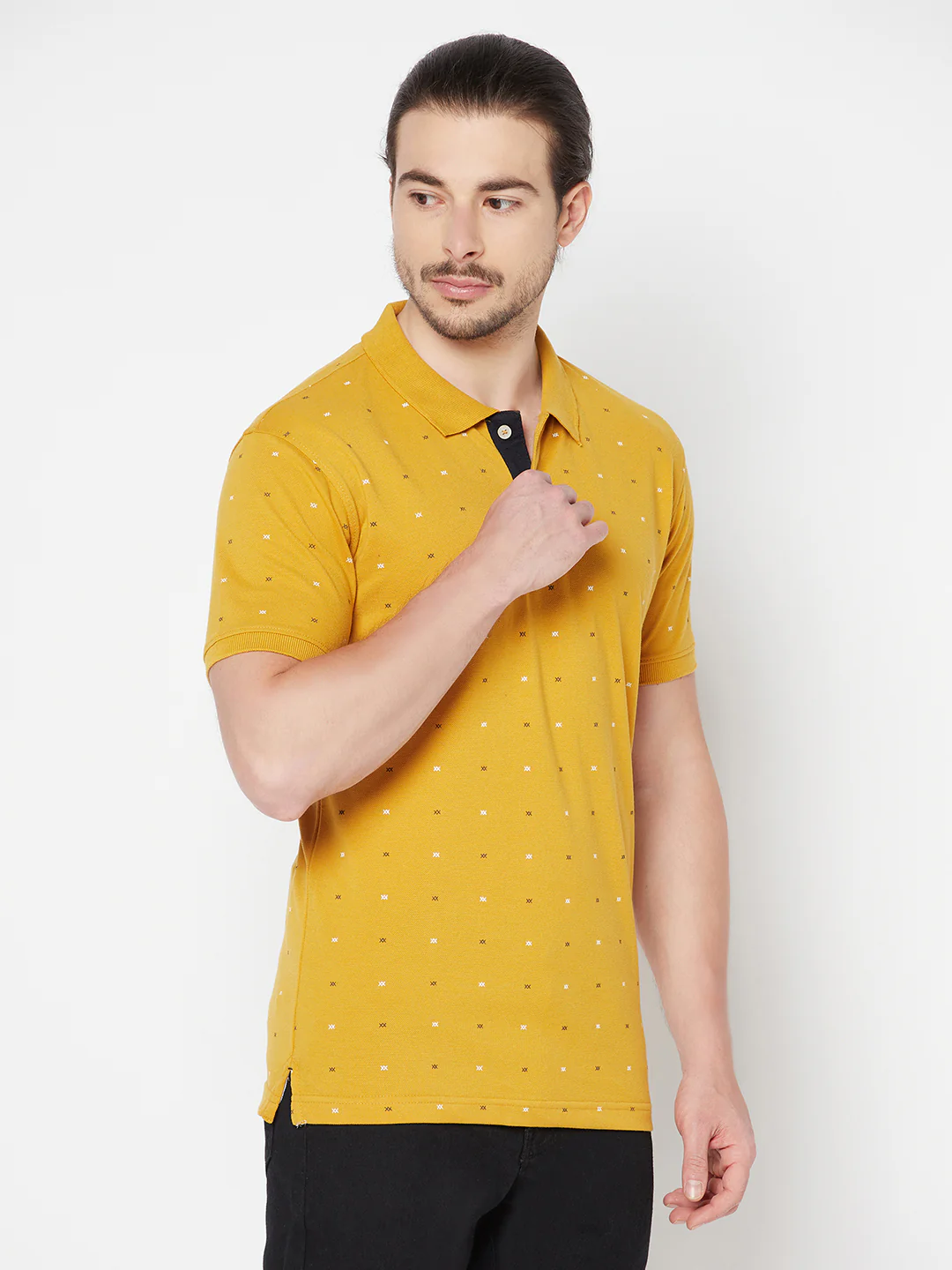 T-Shirt for Men | Breathable & Soft with Color Fastness Regular Fit Polo Neck Poly Cotton Fabric Printed Pattern