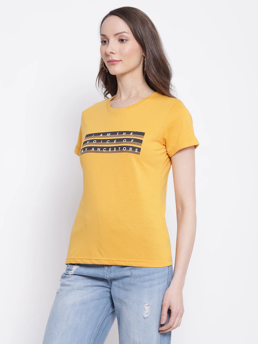Women's Casual Regular Short Sleeve Mustard Round neck Typographic Print T-Shirt