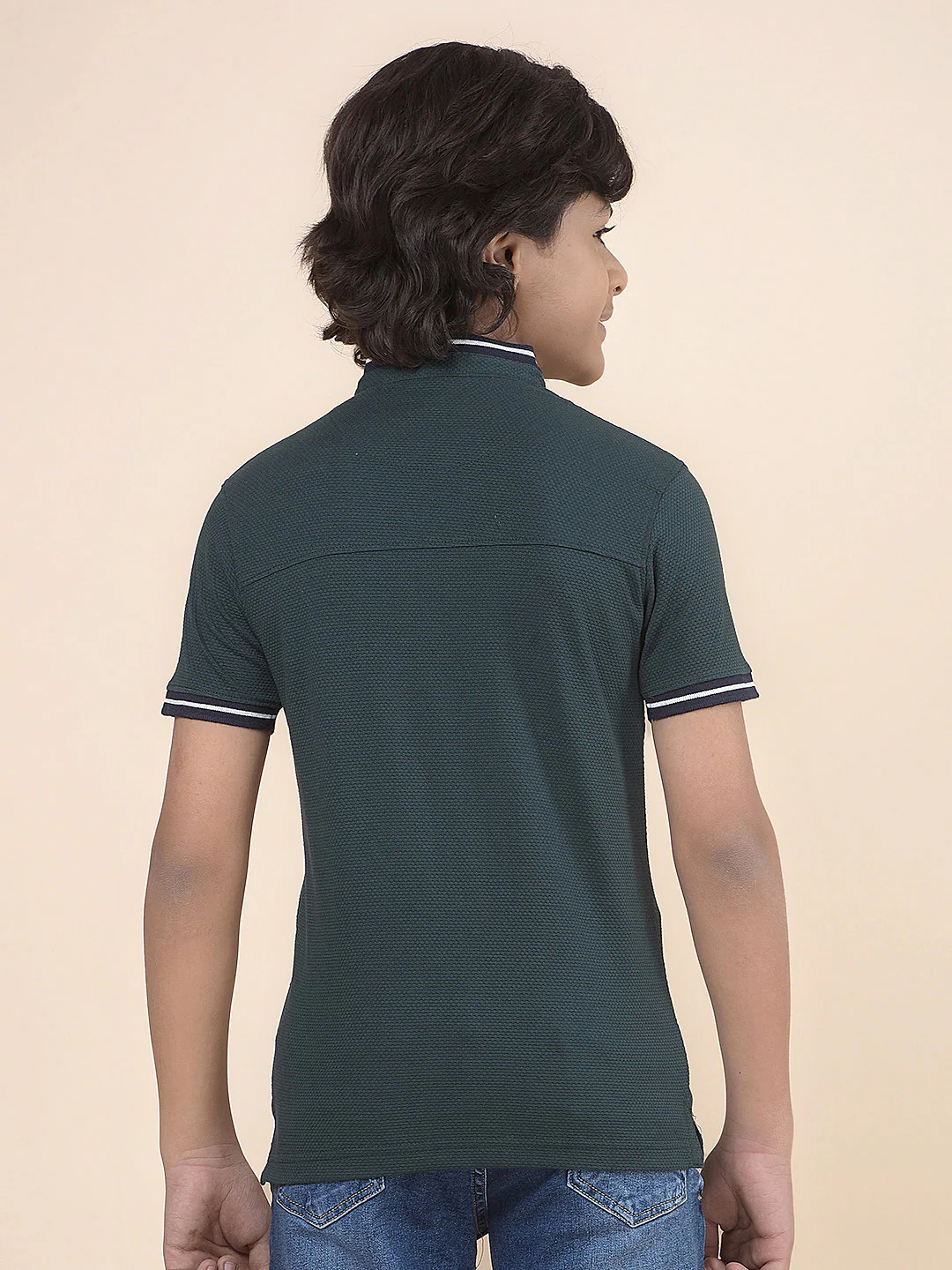 Casual T-Shirt for Boys l Breathable & Soft with Color Fastness Regular Fit Mandarin Collar Poly Cotton Fabric Self Design Pattern