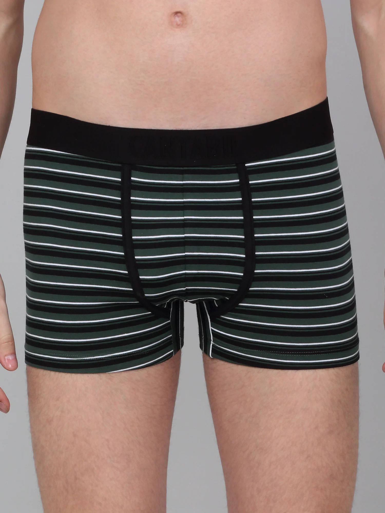 Men's Olive Green Pack of 2 Striped Cotton Briefs