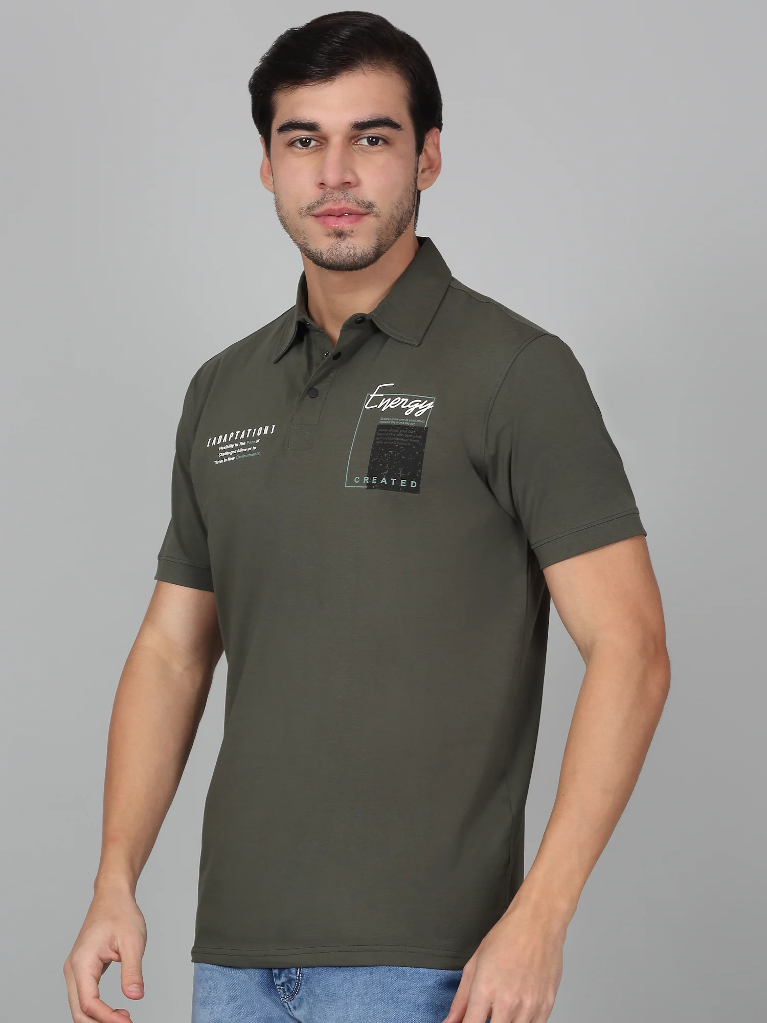 T-Shirt for Men | Breathable & Soft with Color Fastness Regular Fit Polo Neck Cotton Blend Fabric Self Design Pattern