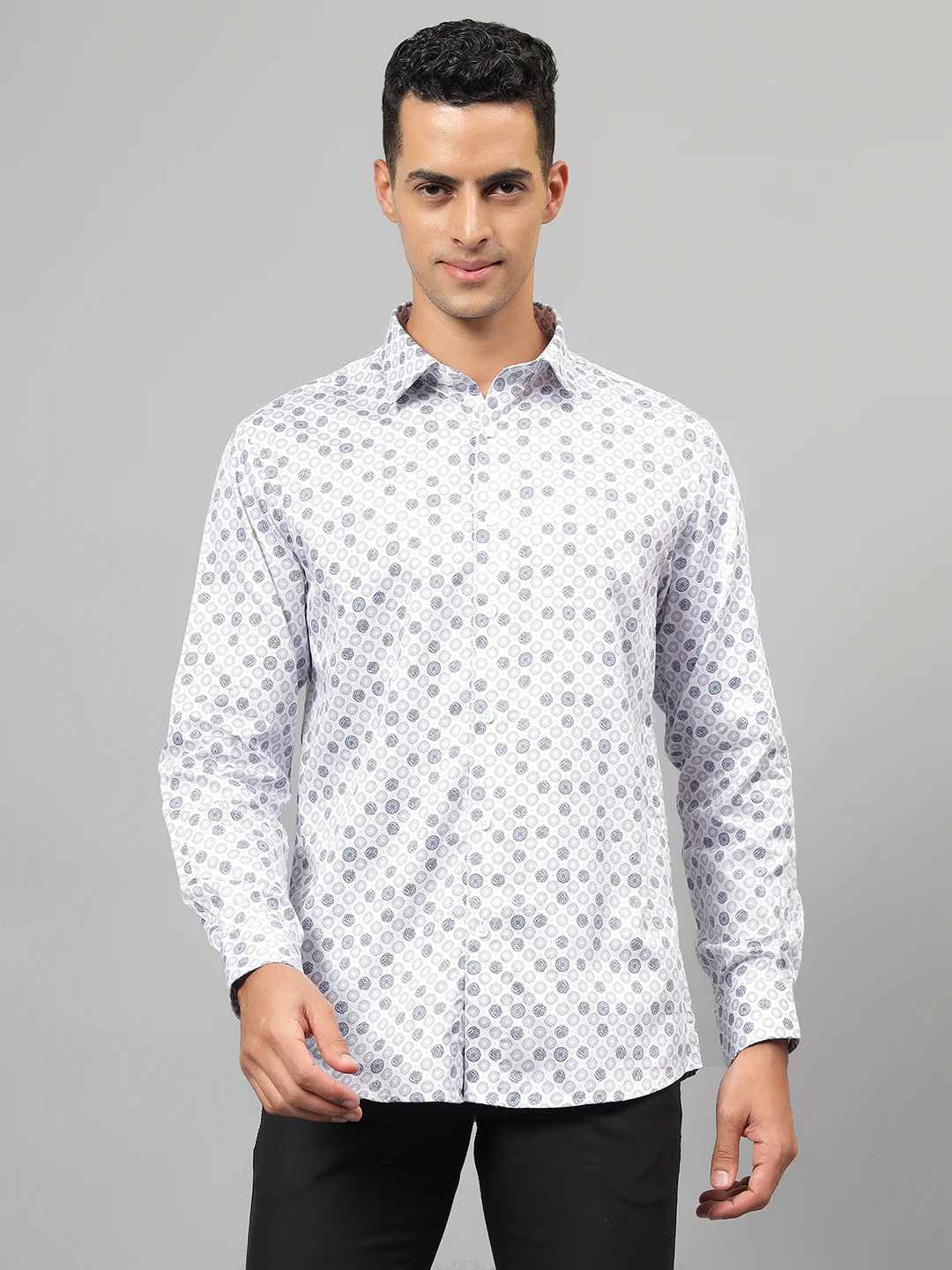 Formal Shirt for Men l Breathable & Soft with Color Fastness Regular Fit Spread Collar Neck Cotton Fabric Printed Pattern